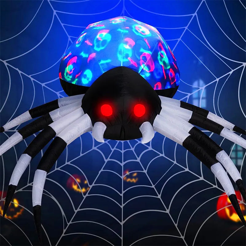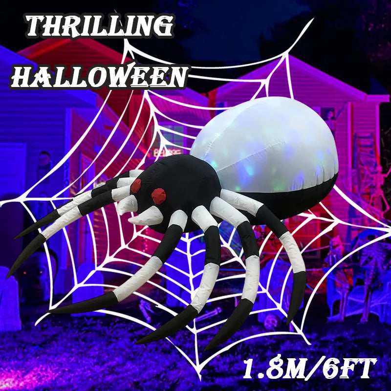 Elevate your Halloween spirit with this stunning inflatable spider! At 6 feet tall, it adds a thrilling touch to your outdoor decor, complete with vibrant LED lights for an unforgettable festive atmosphere.